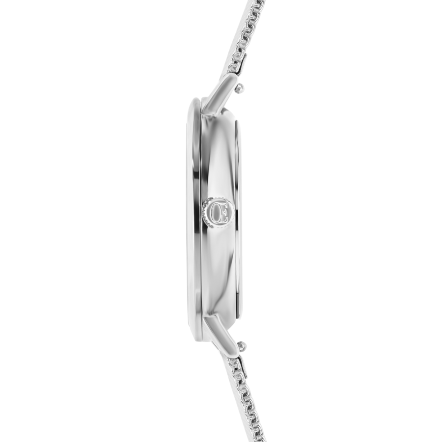 Ten elegancki zegarek ma wysokiej jakości kopertę i pasek Milanese ze stali nierdzewnej. Tarcza Cool Grey z efektem piaskowania stanowi wyrafinowany akcent dzięki delikatnym metalowym aplikacjom w kolorze srebrnym, antracytowym i różowym złotym. Ten elegancki zegarek, noszony samodzielnie lub w przyciągającym wzrok połączeniu z inną biżuterią COEUR DE LION, znacznie wyprzedza swoje czasy.