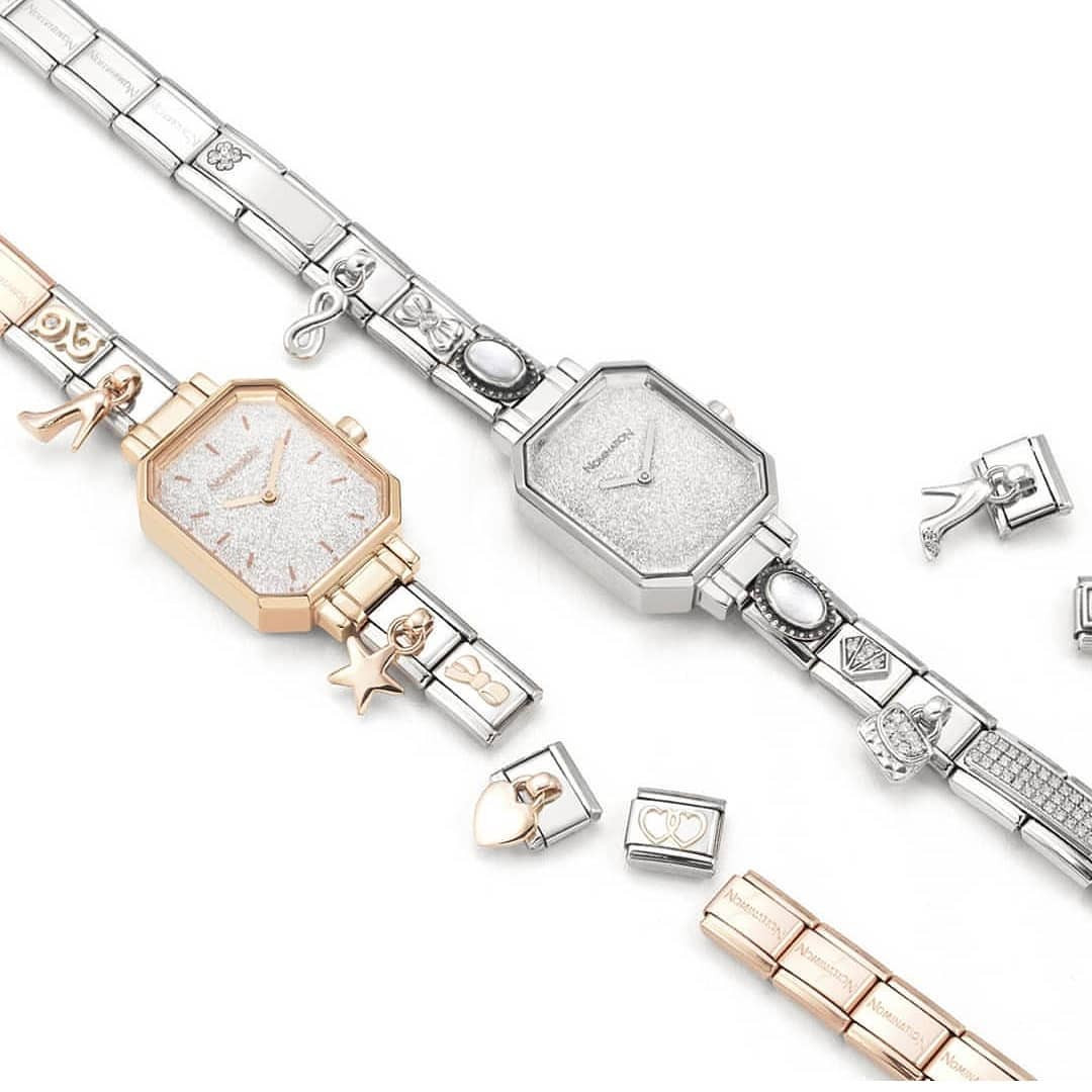 Kolekcjonuj najważniejsze momenty dzięki temu uroczemu zegarkowi NOMINATION, który idealnie nadaje się do łączenia z bransoletami COMPOSABLE. Dodawaj do niego zawieszki, a nigdy Ci się nie znudzi!
