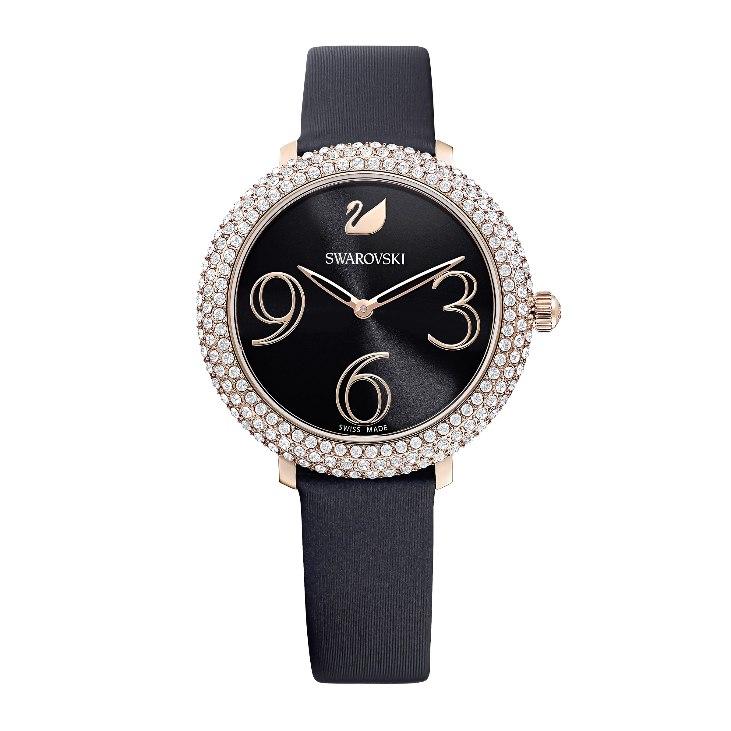 ZEGAREK CRYSTAL FROST, CZARNY, POWŁOKA PVD W ODCIENIU RÓŻOWEGO ZŁOTA