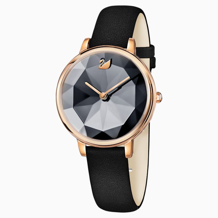 Zegarek damski Crystal Lake pasek ze skóry czarny różowe złoto SWAROVSKI 5416009