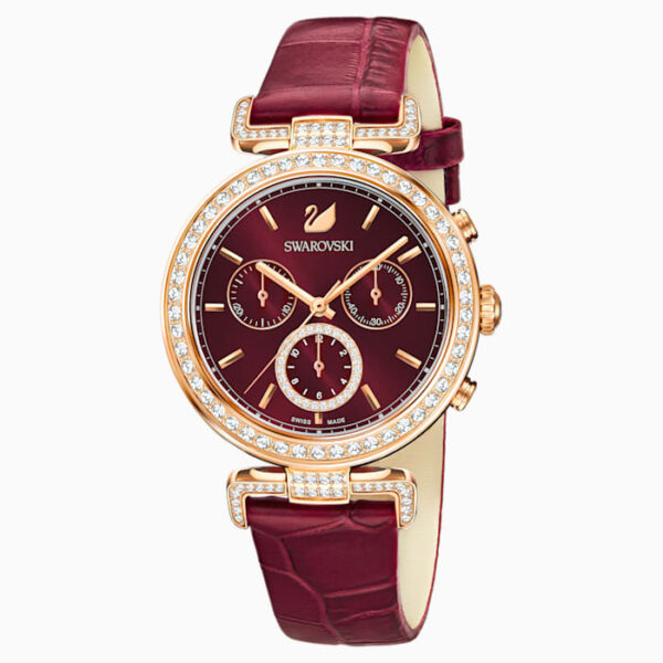 Zegarek damski Era Journey pasek ze skóry ciemnoczerwony różowe złoto SWAROVSKI 5416701