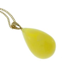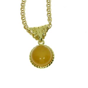 Złota zawieszka z mlecznym bursztynem