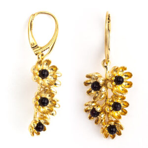Kolczyki z wiśniowym bursztynem KWIATY