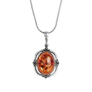 Wisiorek z owalnym bursztynem